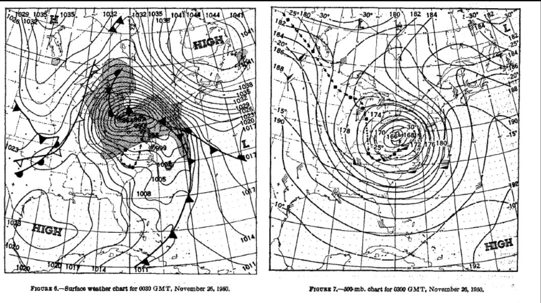 00Z Surface and 500mb Analysis 26 November 1950 Image: NOAA