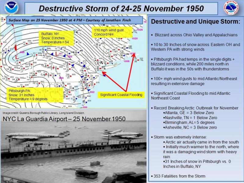On a positive note, one interesting fact is that this was the first storm ever forecasted using NWS numerical model programs. The more recent March 1993 storm was well predicted by computer models based on information gathered from the November 1950 event.