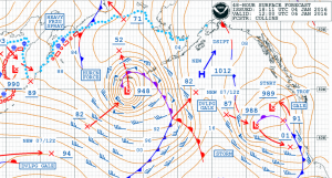 A developing low over the western North Pacific will deepen rapidly as it moves northeastward reaching hurricane force with winds forecast 55-70 knots and seas building 7-12 meters (24-40 feet) 60-240NM west and south of the center as it nears the Aleutians in 36-48 hours.