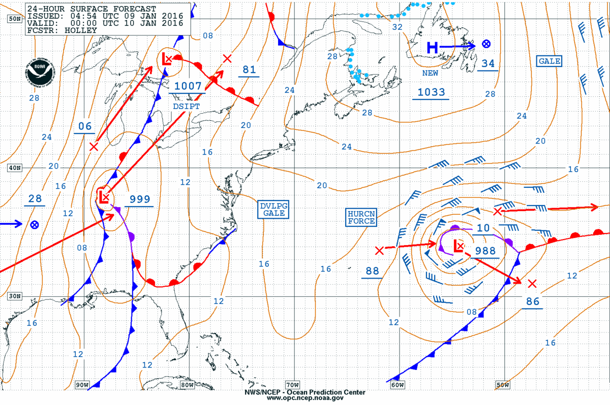 NOAA OPC Surface Forecast 00Z 10 Jan 2015