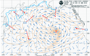 A quick update this morning – The developing storm over the central North Pacific is still forecast to reach 948 MB over the next 18-24 hours with winds increasing 65-90 knots and seas building over 16 meters (52 feet) up to 240NM west and south of the center. By 00Z/15th seas may continue to build as high as 18 Meters (59 feet) as the storm enters the eastern North Pacific.