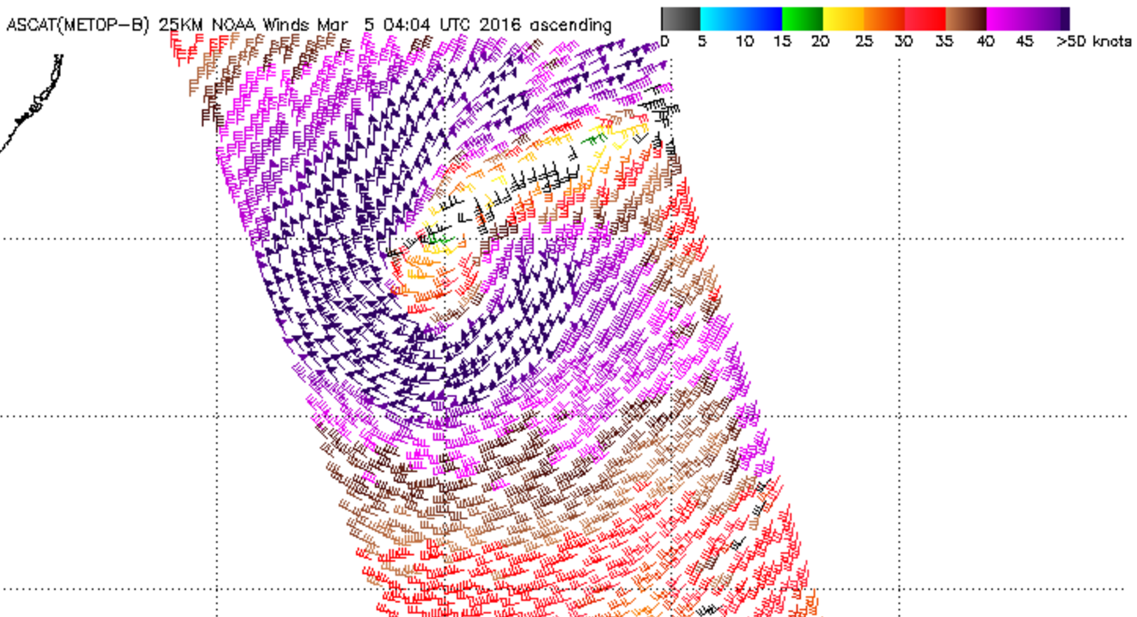 NOAA ASCAT METOP-B Satellite winds about 0100 UTC 5 March