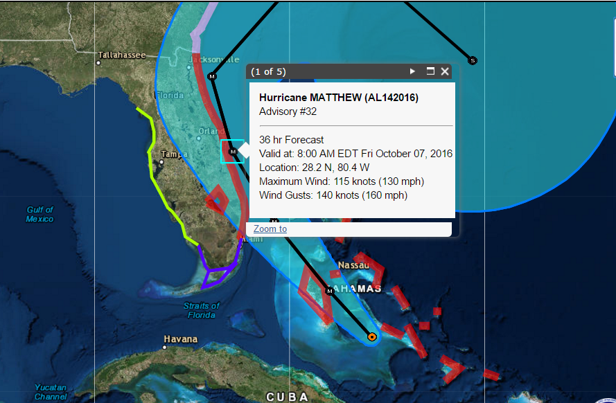 ← Hurricane Matthew moving across Bahamas then heads towards Florida