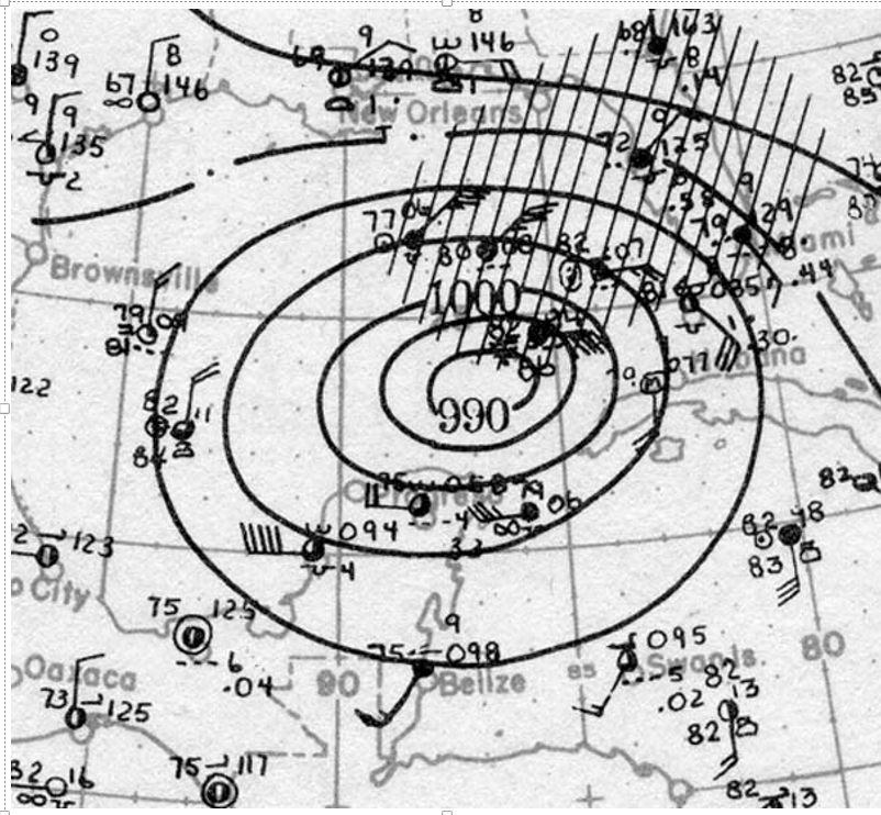 Surface weather analysis of the sixth hurricane of the 1921 Atlantic hurricane season on October 24, 1921.