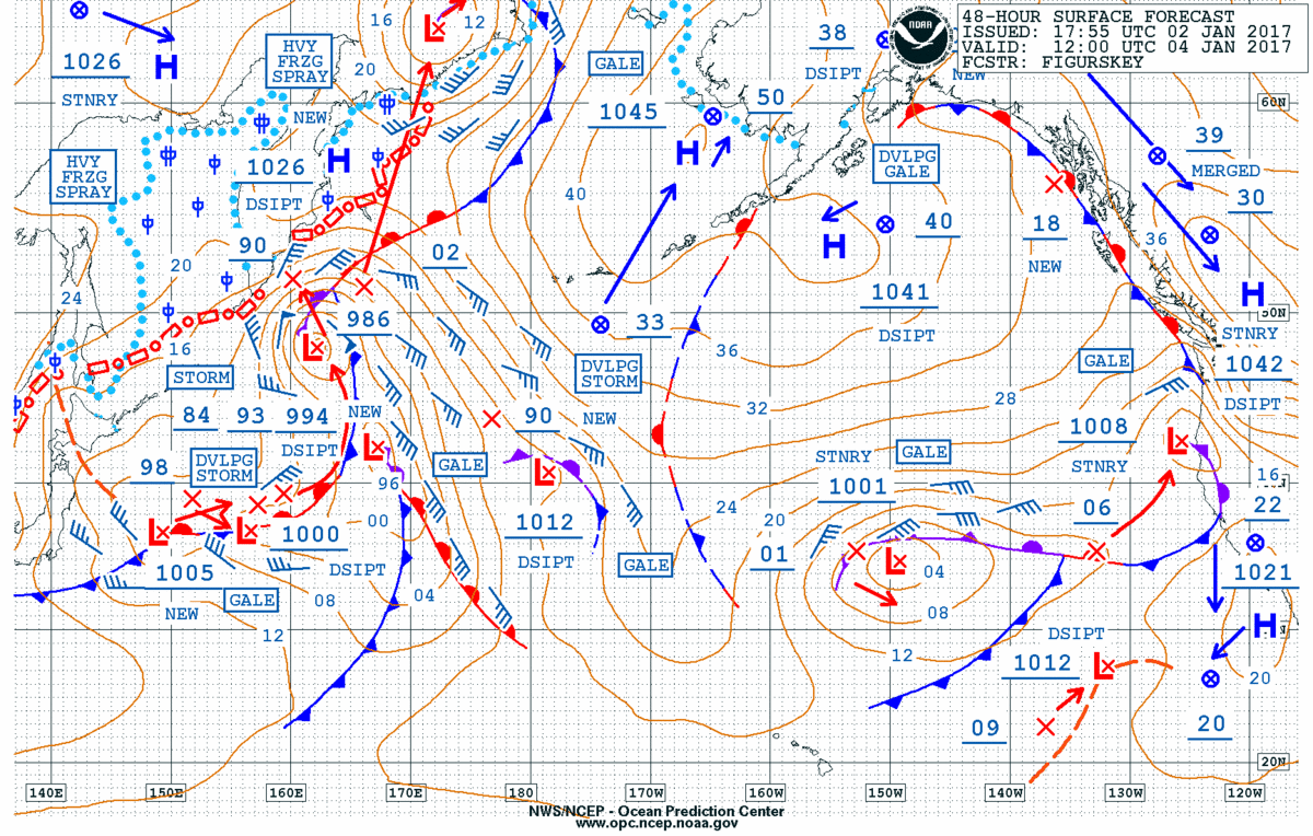 North Pacific 48 Hour Surface Forecast: NOAA OPC