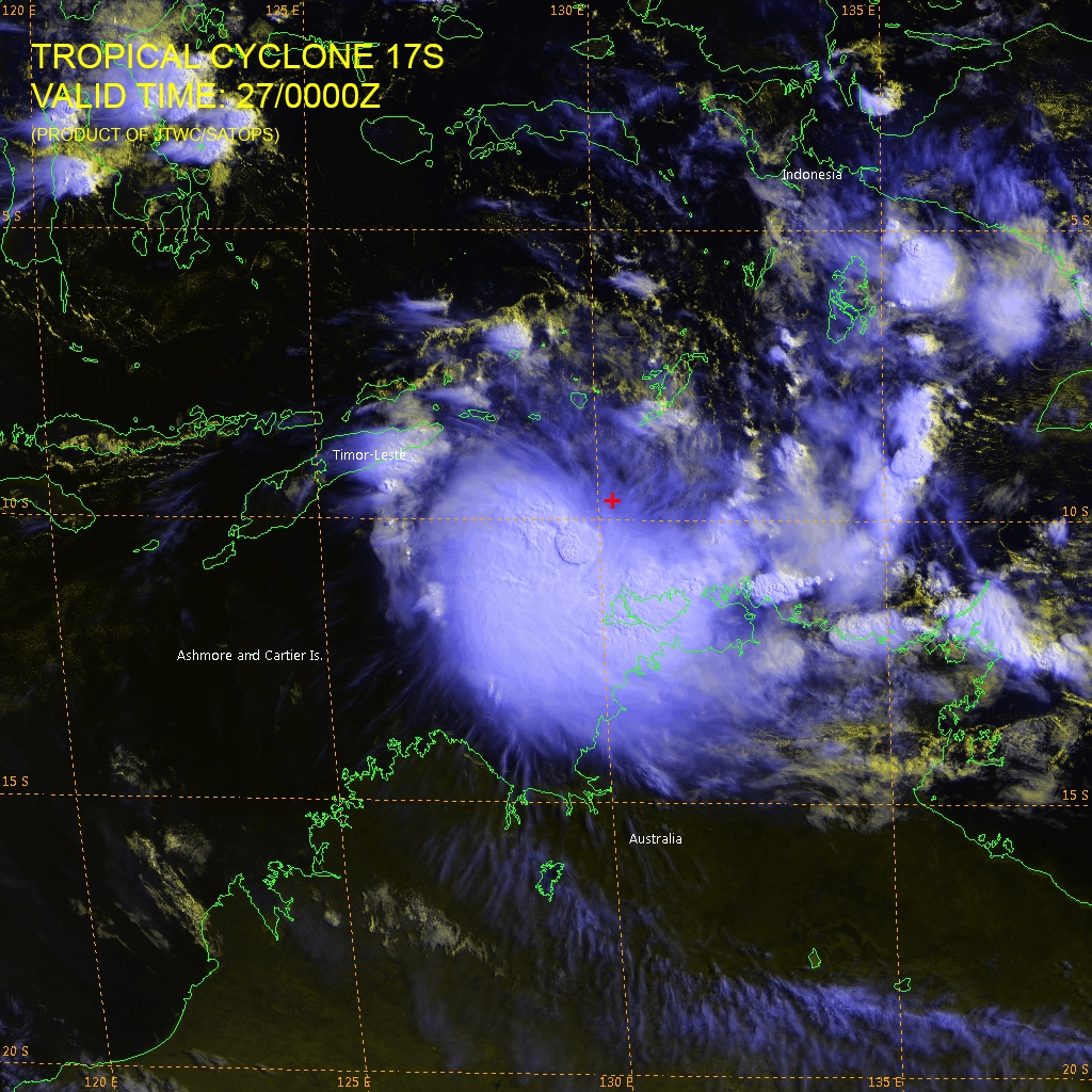 TC 17S has developed about 179 NM NNW of Darwin Australia and was moving towards the SW at about 8 knots with max winds of about 35 knots.