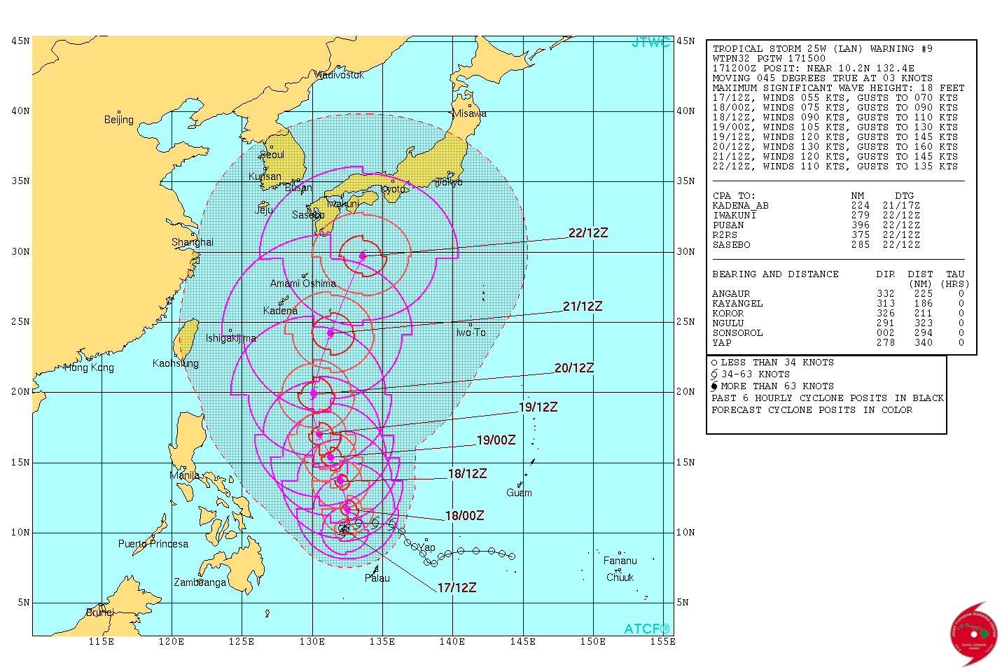 Tropical Storm Lan satellite image from JTWC Satellite Ops