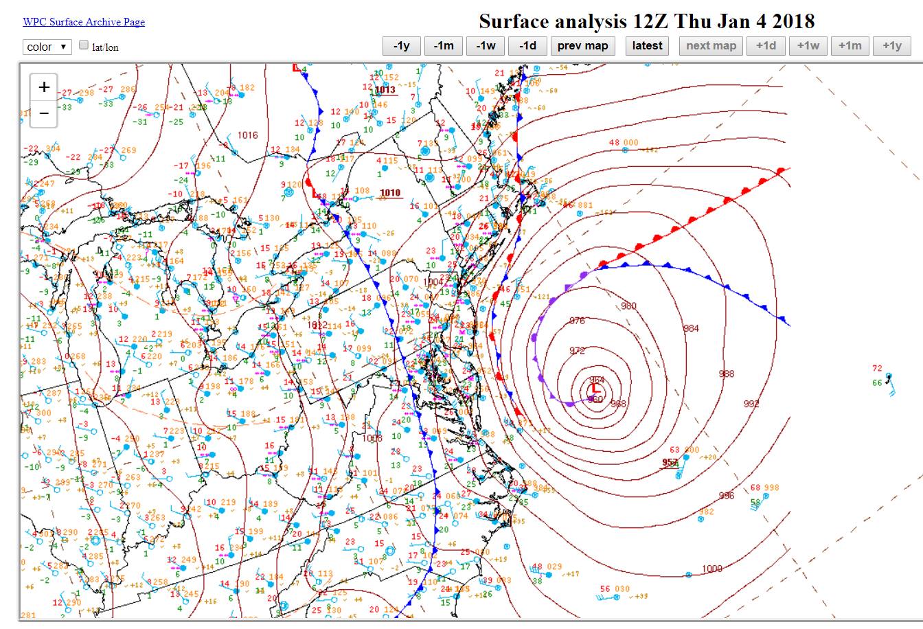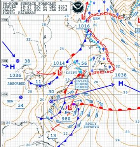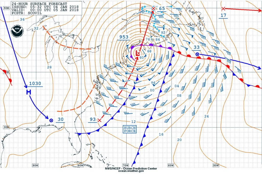 As far back as New Year’s eve NOAA was predicting a rapidly deepening hurricane-force storm off the US East Coast for the 4th so this one was no surprise!