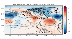 NCEP Reanalysis mean surface pressure April 2018. Image credit https://www.tropicaltidbits.com