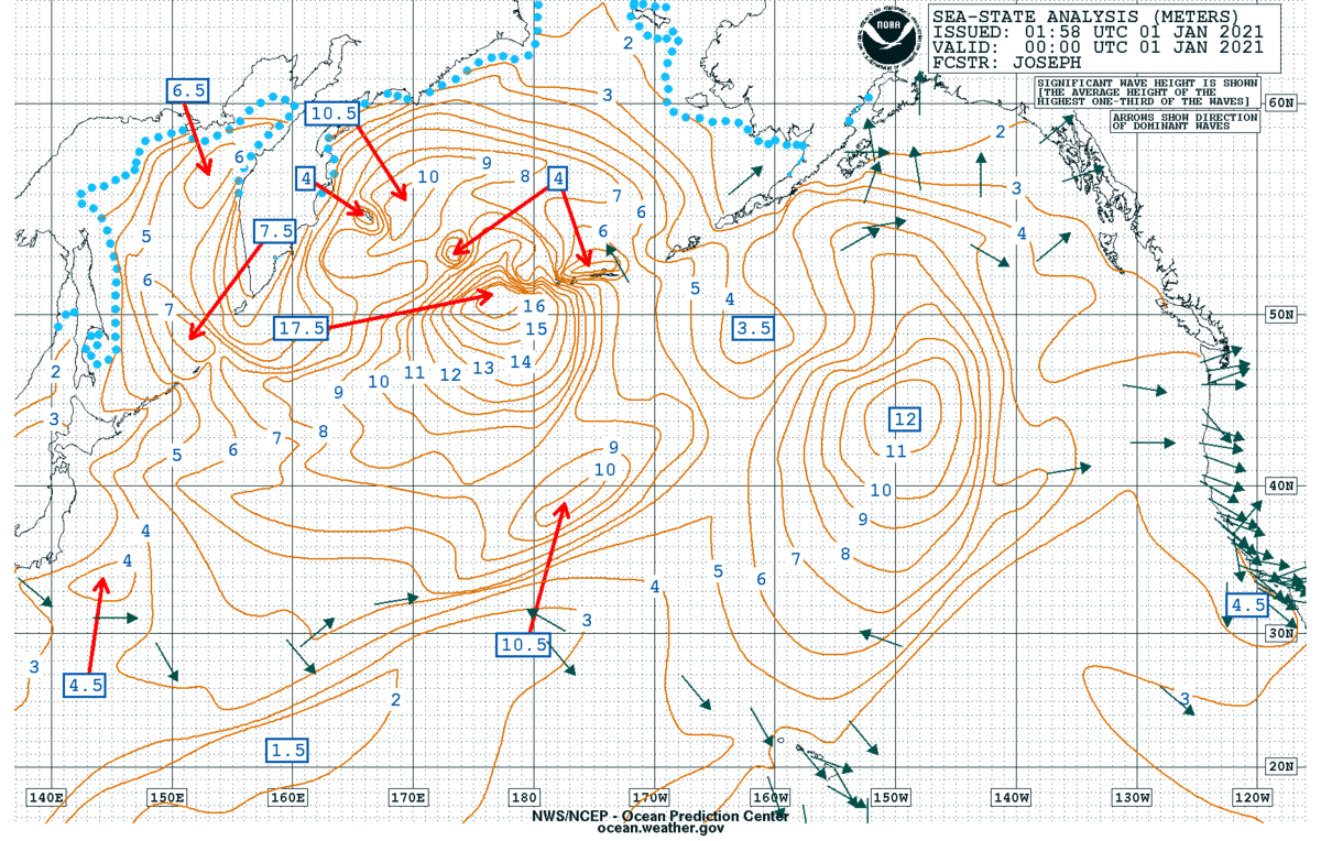As 2020 transitioned into 2021, a rapidly deepening and intense hurricane-force storm over the western North Pacific has set an all-time record low central pressure of 921 mb breaking the previous record of 924 mb recorded on Nov 8th, 2014 over the Bering and tied in Dec 2015.