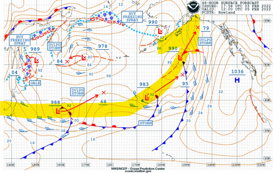 NOAA OPC Surface Forecast 1200UTC 5 Feb 2022