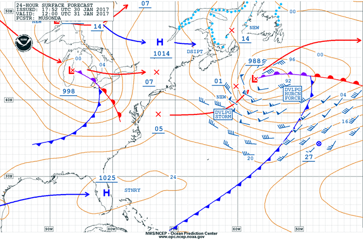 NOAA OPC Surface Forecast for 1200UTC Tuesday 31 Jan. 2017